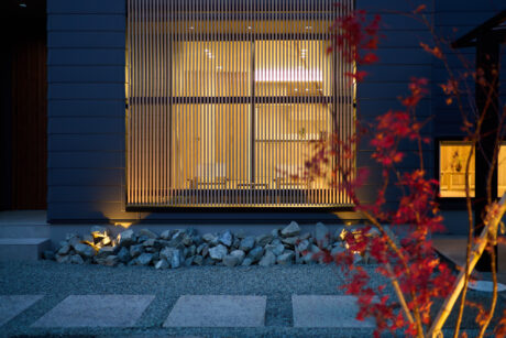 朝は柔らかな日差しが入り、夜は室内の灯りがほんのり外へ広がるなど、時間帯によって表情が変わるのも魅力。
