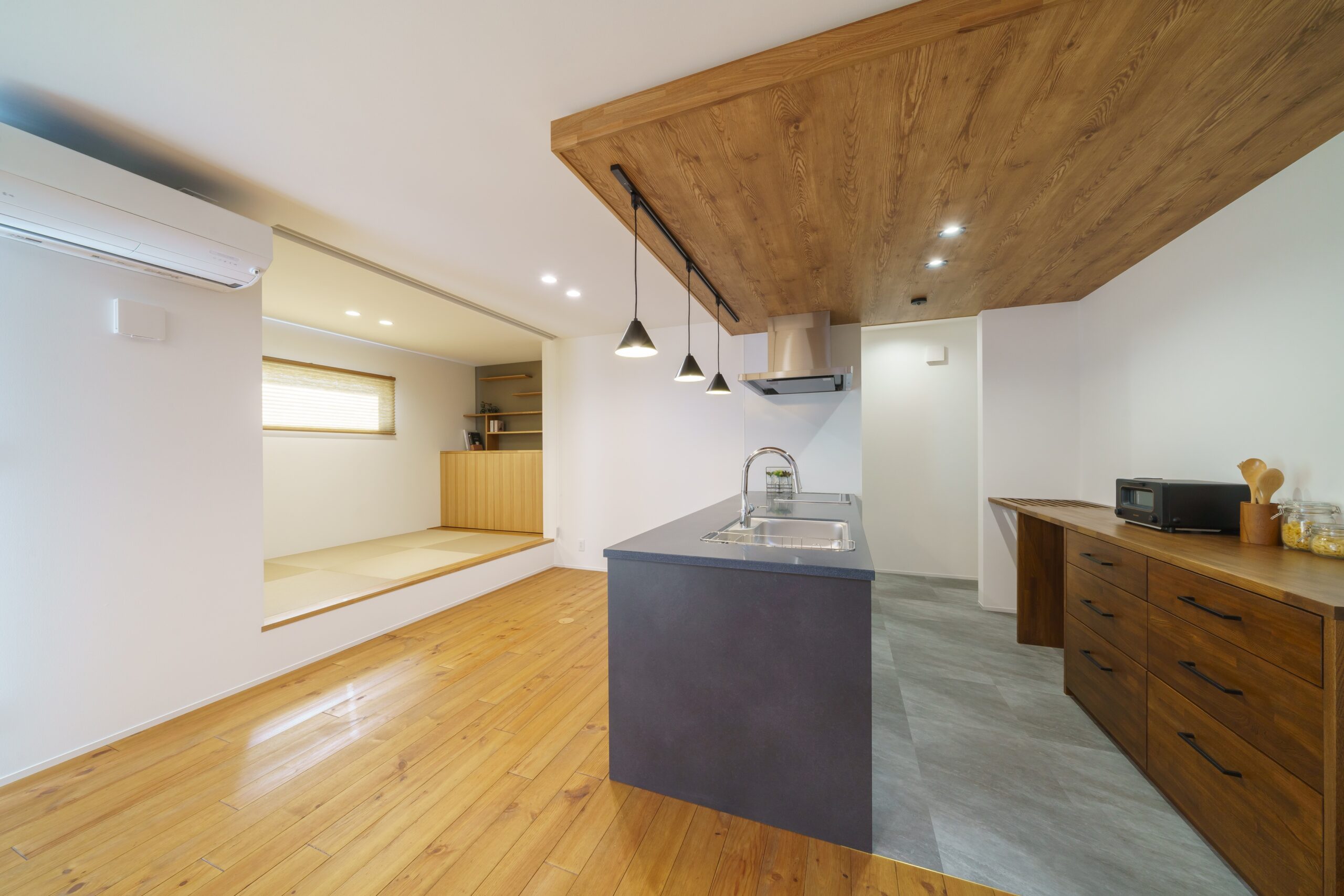 平野の自然豊かながらも主要道路にアクセスに便利な立地に完成した「自分達のための居場所」。 デザインも住み心地も両方を兼ね備えた一棟になりました。今所有している物と、これからのライフスタイルを想定し、 総合的に設計しました。家族の変化と共に一緒に時を経ていく、そんな素敵なお家です。
