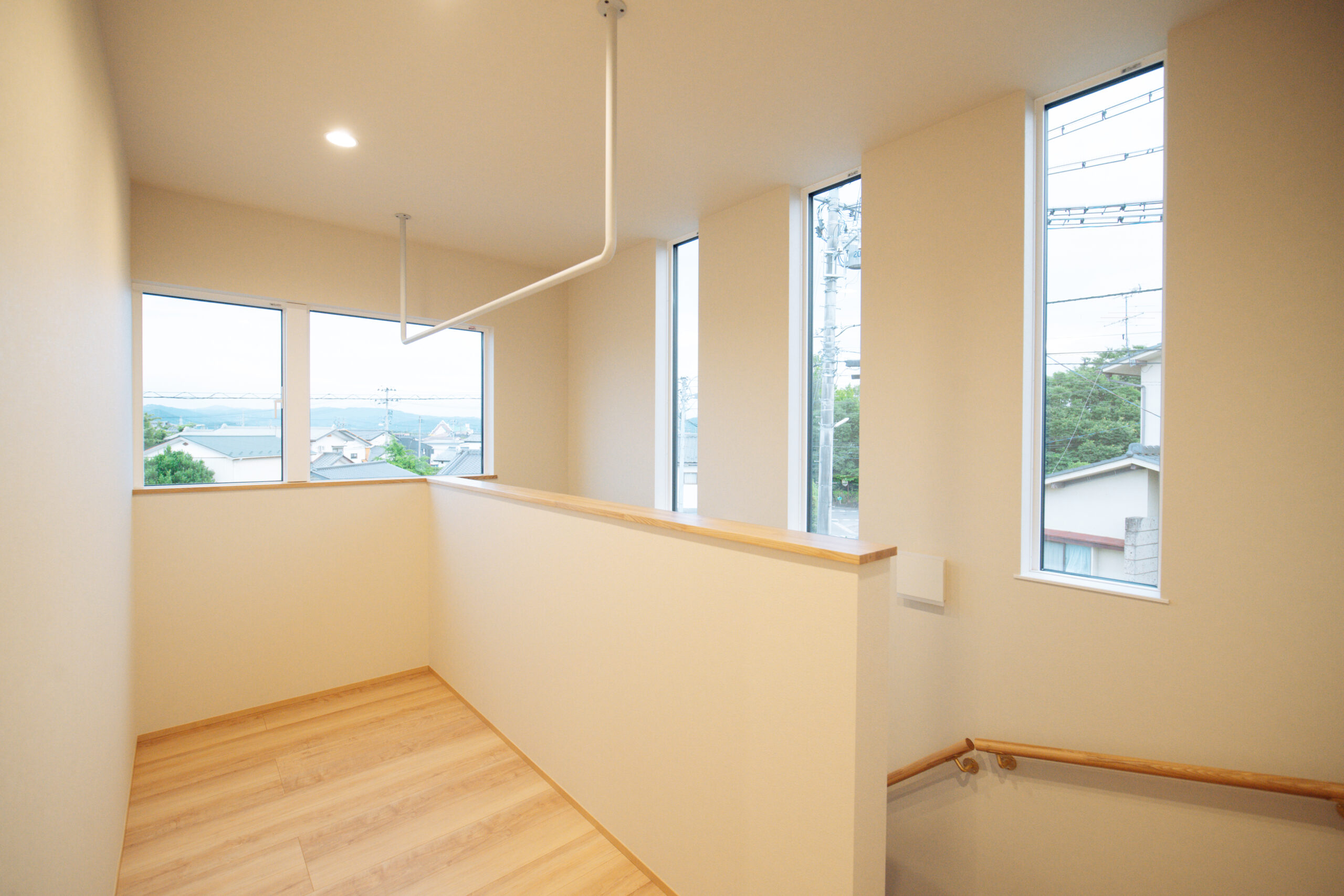 2階ホールにもしっかり室内物干しスペースを確保。
